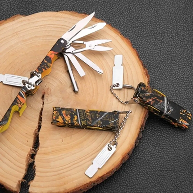 HIGH QUALITY Multifunction Tool Knife Outdoor Bushcraft Survival Camouflage Nail Clipper Bottle Opener Scissors